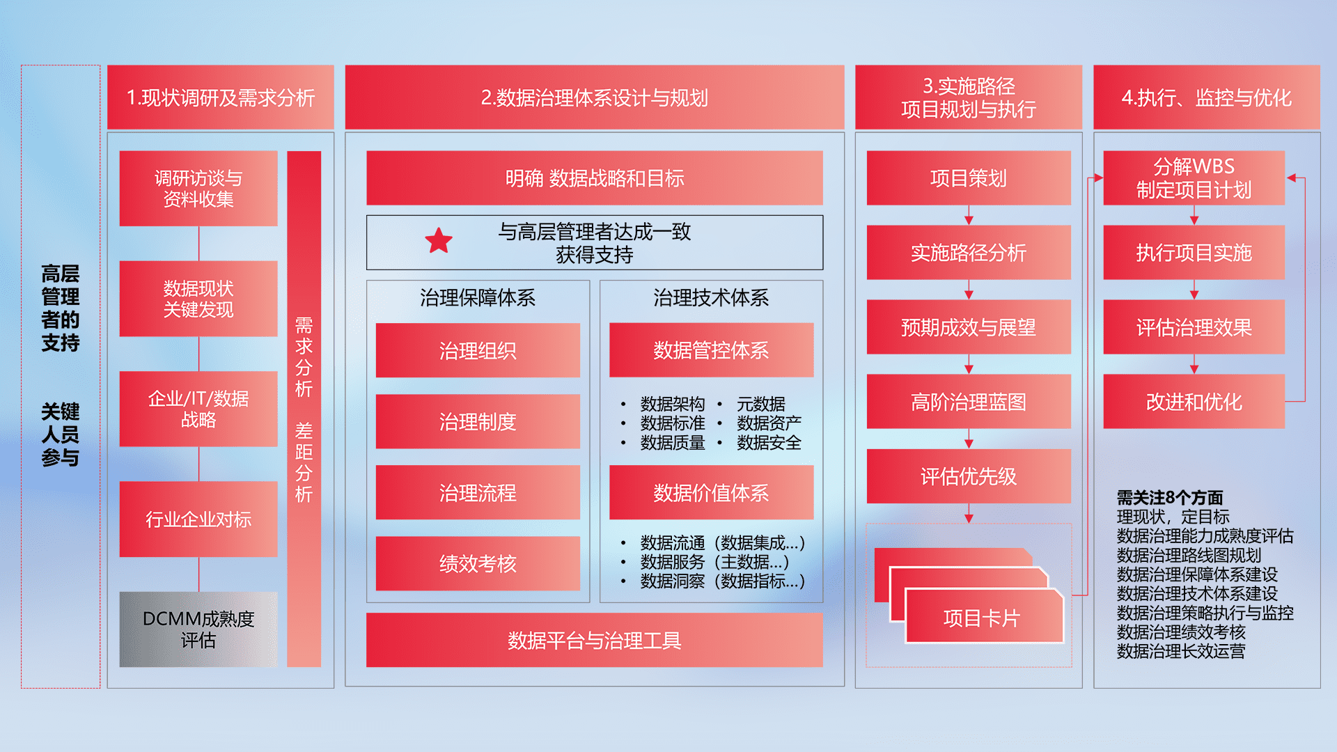 制定并执行统一的数据标准,,,,规范数据定义和格式,,,消除冗余和不一致性,,,,实现跨部门和跨系统的数据一致性,,,为企业提供标准化的数据基础。。。。